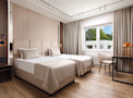 Новый формат семейных апартаментов предлагает виллу на 206 кв. м. В них есть гостиная с камином, кухонная зона, основная и дополнительная спальни, гардеробы. Ванная комната оснащена полноценной ванной, а также имеется отдельный гостевой санузел. В номере также есть роскошный бассейн.